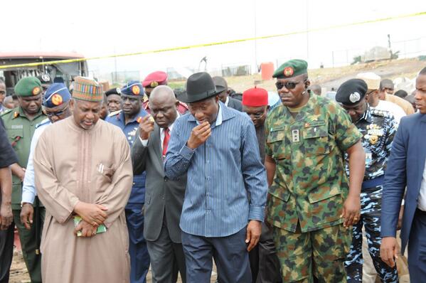 President Jonathan at the scene of the blast